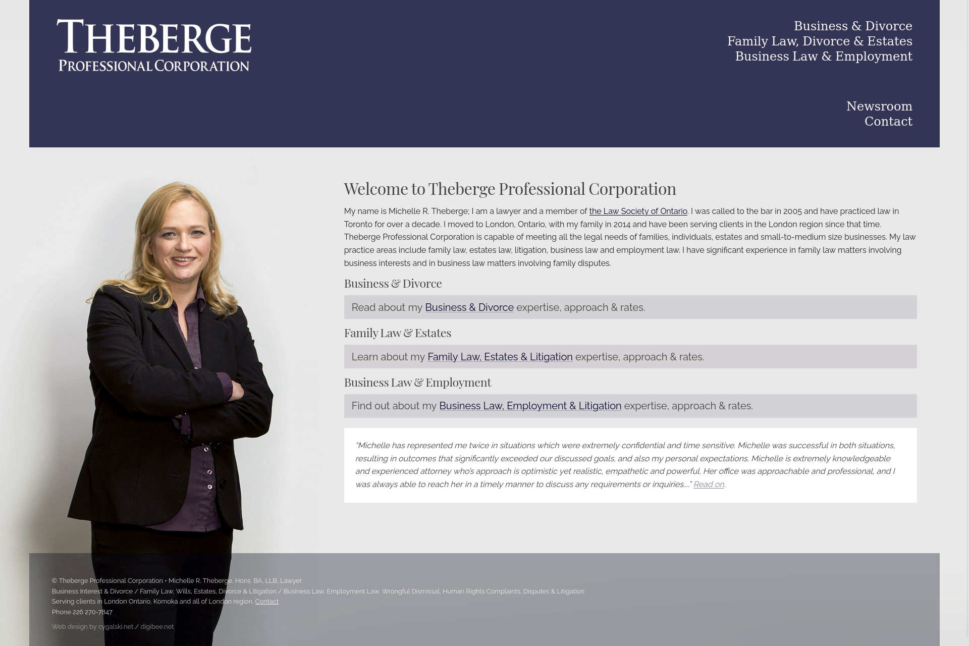 Michelle R. Theberge, Hons BA, LLB, Theberge Professional CorporationAfter moving my law practice from Toronto to London, Mike designed a new web site for me. He did an amazing job and continues to assist me with updates and optimization. Mike is a creative, out the box thinker and has really assisted me in developing my practice here in London. His rates are very reasonable and I highly recommend him!